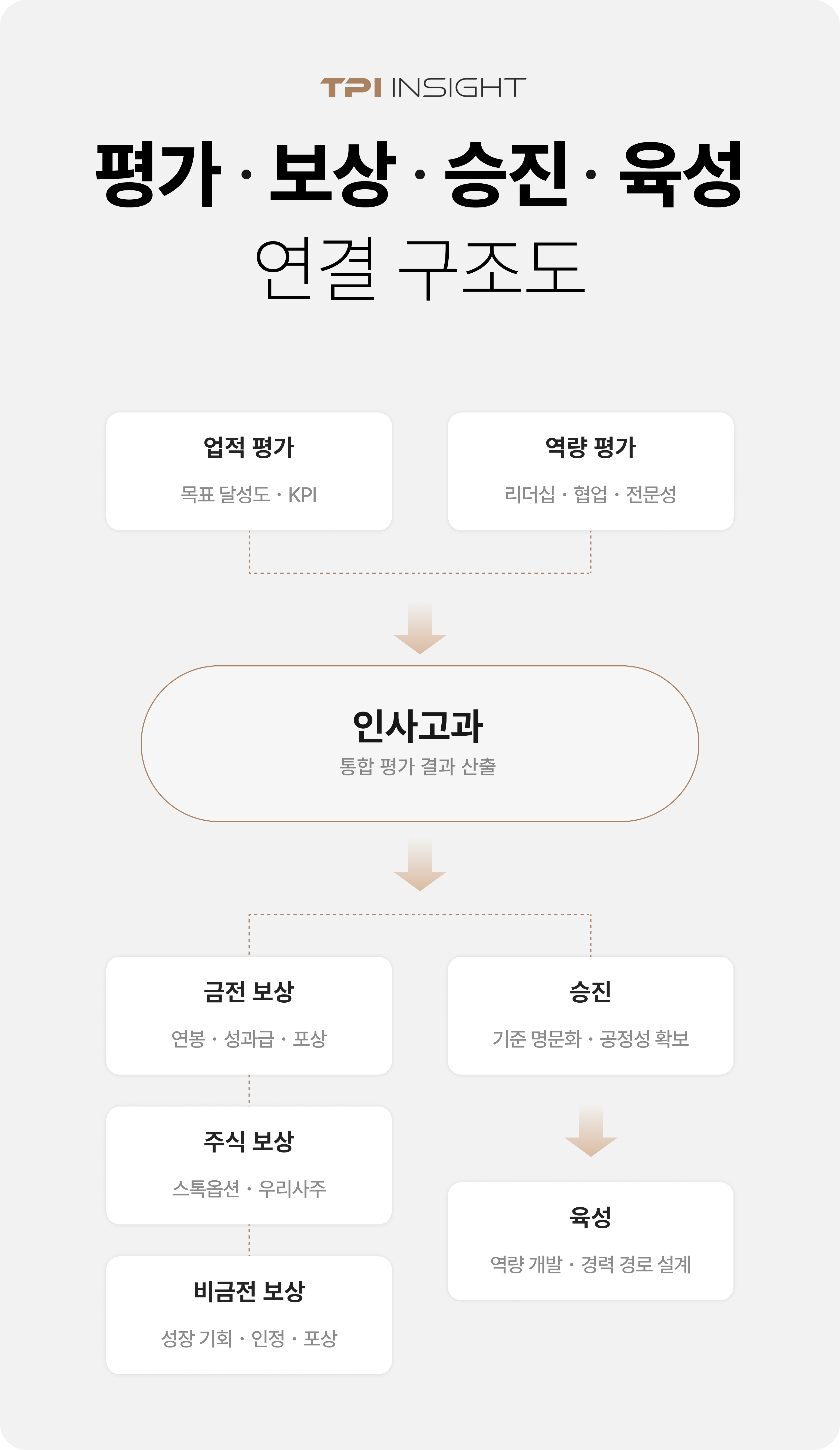✔ 평가·보상 체계 수립 (업적+역량 연동 인사고과 도입)